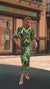 Vestido confeccionado en tejido ligero con estampado tropical en tonos verdes. Presenta escote cerrado y mangas abullonadas que aportan volumen. Incorpora detalle fruncido en la parte frontal con sutil cut out. Diseñado y fabricado íntegramente en España. Composición: 55% rayon, 45% lino- 250€